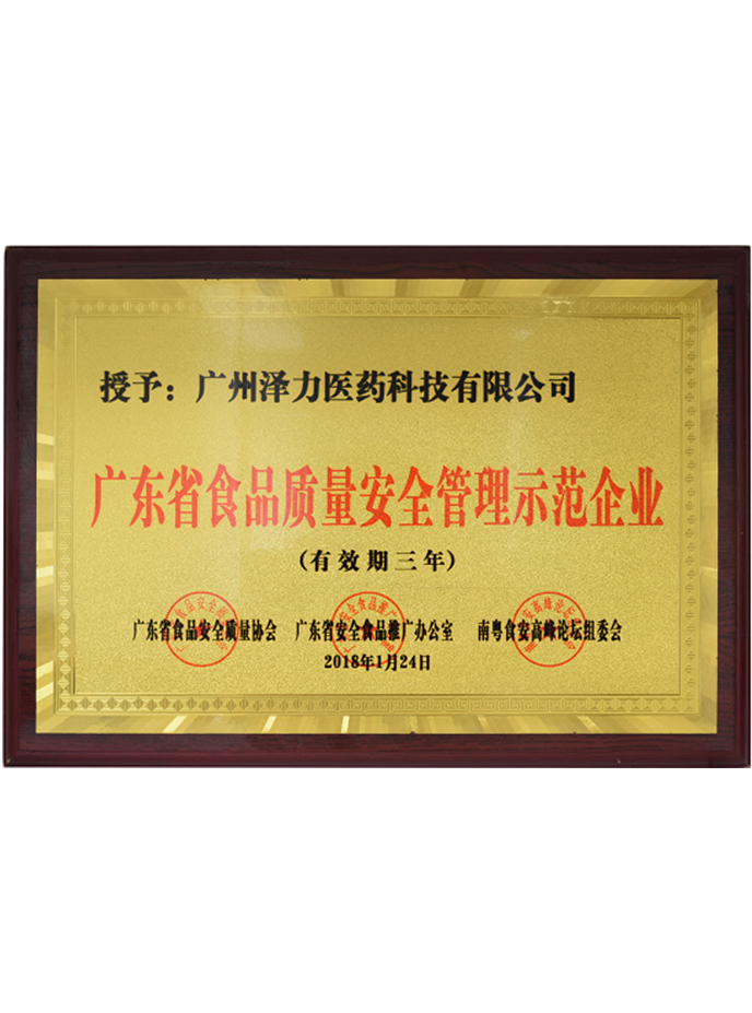 ● 获批“广东省食品质量安全管理示范企业”。
