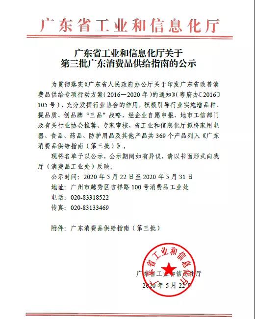 近日,“食膳养”罗汉果化橘红固体饮料成功入选《广东消费品供给指南(第三批)》(以下简称“消费品指南”),并在广东省工业和信息化厅官网进行公示。