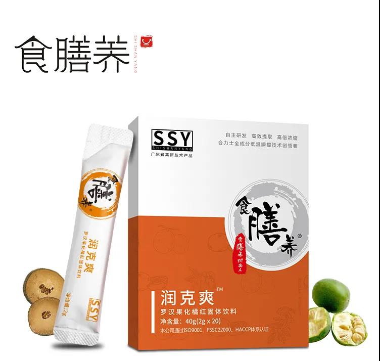食膳养“罗汉果化橘红固体饮料”甄选罗汉果、化橘红等珍贵本草为原料,经广州尊龙凯时创新研发的第三代合力士低温瞬提技术制成的新膳食营养饮料。
