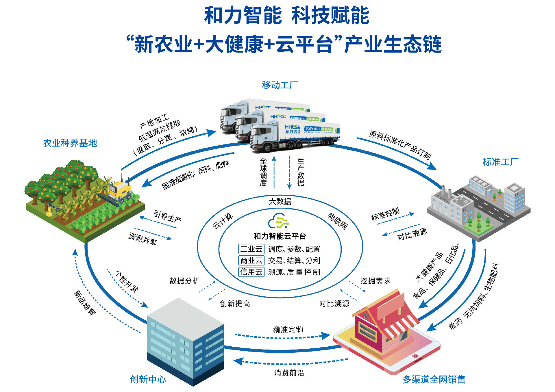 广州尊龙凯时以乡村产业振兴和人类健康为己任,依托智能制造、新农业、大健康和大数据四大板块,以和力智能高端装备支撑“新农业+大健康+云平台”产业生态链建设,科技赋能333战略规划,促进一二三产业有机融合,助力现代农业全产业链高质量发展。